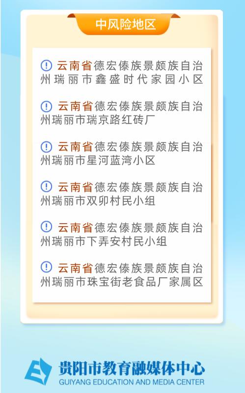 4月23日,贵阳市教育局对全市教育系统“五一”节期间疫情防控工作做了提示,明确“五一”节期间教职员工、学生要离黔的,需提前向本单位进行备案,并提前了解目的地疫情防控规定,非必要不得出国(境)和前往中高风险地区,如必须前往,返黔后要按照《省应对新冠肺炎疫情防控领导小组办公室关于进一步加强省外中高风险地区来(返)黔人员和非法偷渡人员排查管控的通知》(黔府办发电【2021】60号)的要求,做好筛查和相关监测,严格落实防控措施。