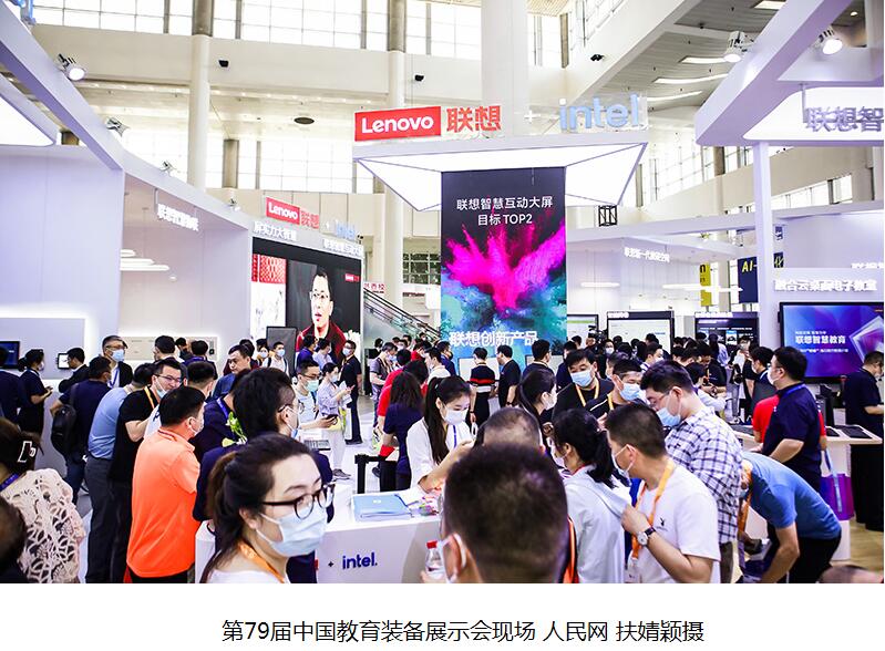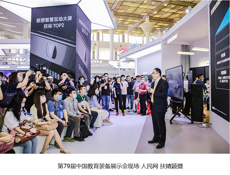 第79届中国教育装备展示会现场 人民网 扶婧颖摄 联想集团副总裁、中国区商用大客户业务总经理王立平介绍,新一代学习空间作为创新学习空间,可以满足未来教学模式变革场景需求。“它以新一代信息技术为支撑,形成了以智慧黑板、交互大屏为核心产品的智能交互显示场景,拓展了传统教学形式,为教师及学生营造了一个更加健康、安全及信息化的交互学习空间。”王立平说。 海量数据、资源共享 信息化助力教育教学 随着教育信息化2.0时代的来临,越来越多的智能教育装备走进校园、走进课堂。据现场讲解员介绍,联想已经帮助甘肃省定西市岷县一所学校的20间教室进行了智慧教室改造,主要采用了智慧黑板,实现教授课方式的转变。 此外,在去年疫情期间,云课堂直播也得到了广泛应用——仅北京市海淀区就有27万中小学生通过联想云课堂直播平台同时线上听课。