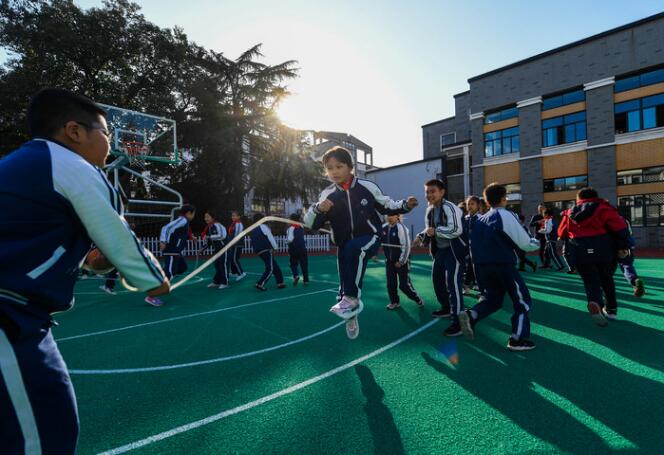 11月25日,浙江省湖州市一学校的学生们在课后参加集体跳绳活动。新华社记者 徐昱 摄