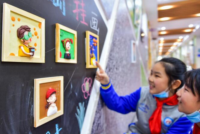 11月19日,在河南省洛阳市涧西区英语学校国际文化节上,学生展示自己的手工软陶作品。新华社发(黄政伟摄)