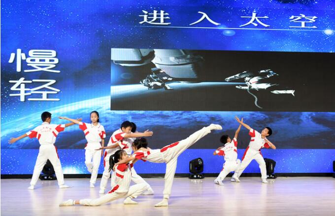 10月15日,北京人大附中航天城学校学生表演舞蹈《太空》。新华社记者 金良快 摄