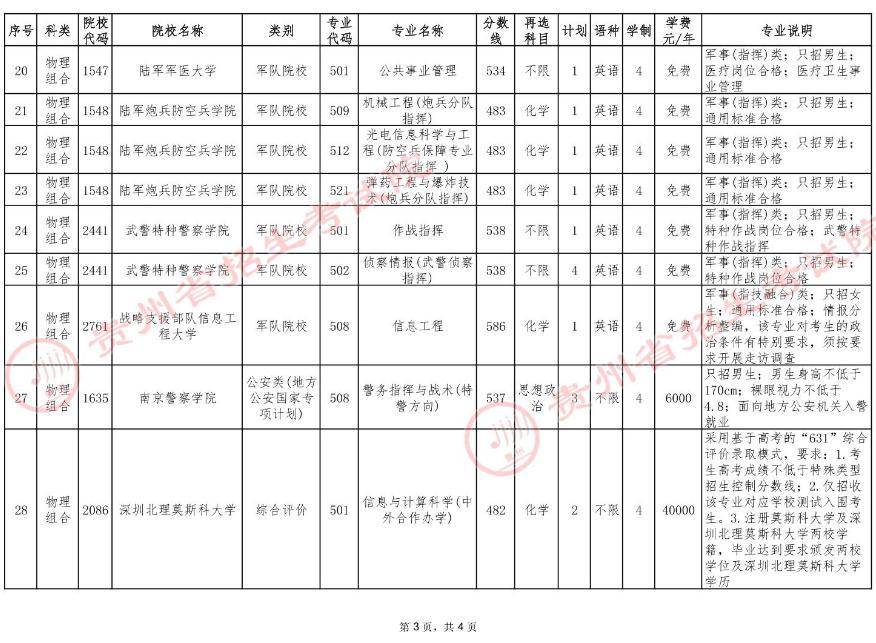 1.军队和公安院校:请考生按照《本科提前批A段征集志愿计划统计表》中各军队和公安院校的分数要求进行填报,未达到限制分数的,所填报的志愿无效。
