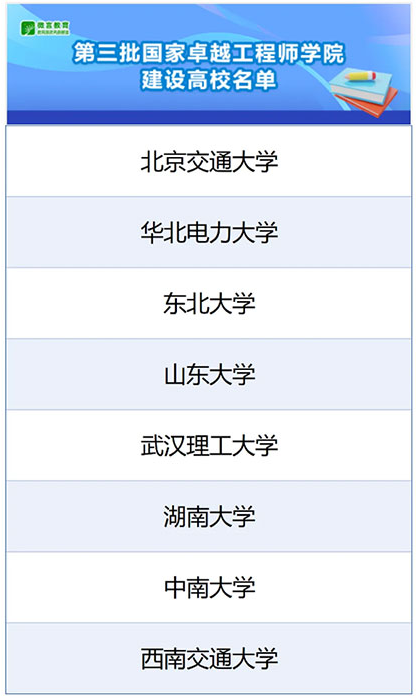 根据《教育部办公厅 国务院国资委办公厅关于支持部分高校和中央企业试点共建国家卓越工程师学院的通知》,经商国务院国资委,教育部决定支持部分高校与企业共建第三批国家卓越工程师学院。近日,教育部公布第三批国家卓越工程师学院建设高校名单,一起来看——