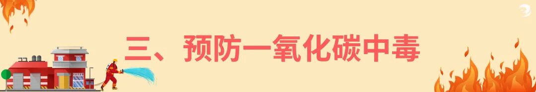 冬季使用煤炭、柴火取暖时,室内门窗不要封闭过严;尽量不要在封闭空间内使用煤气灶具和燃气热水器;长时间待在车内时,应保持车窗开启,特别是在使用空调的情况下;不要在密闭的室内吃炭火锅、点炭火盆等,避免在密闭空间内产生一氧化碳积聚,造成中毒事故发生。