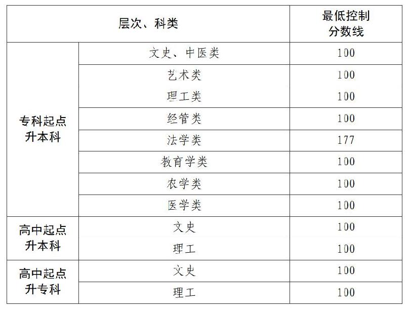 根据教育部下达我省2025年成人高校招生计划,结合我省考试总体情况,经省教育高质量发展委员会同意,现公布我省2025年成人高校招生各层次、科类最低录取控制分数线。