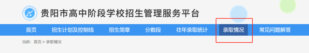 点击进入“贵阳市高中阶段学校招生管理服务平台”。