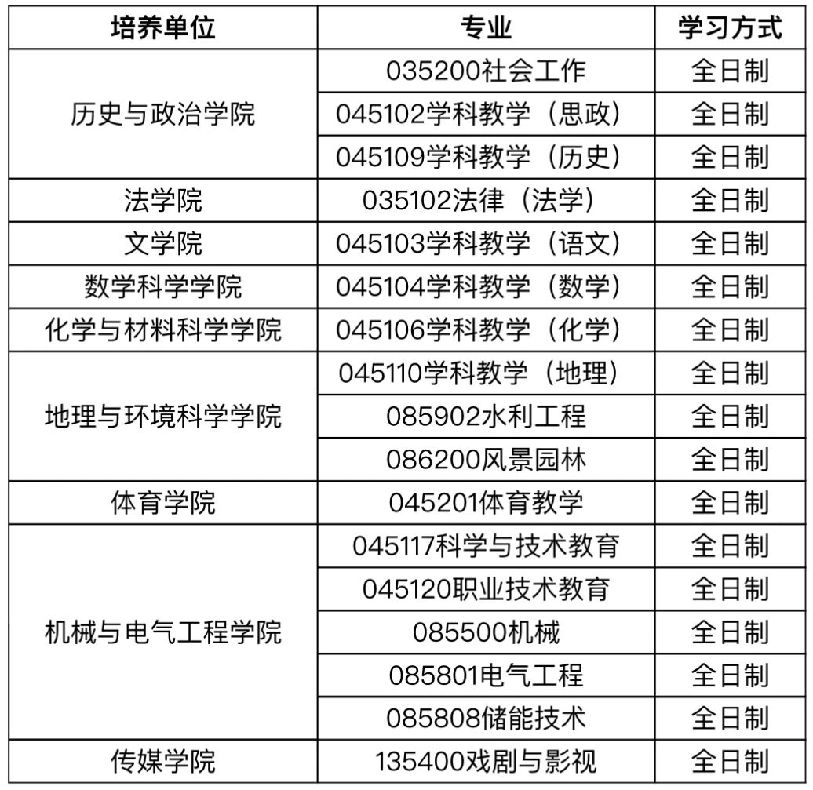 我校2026年所有硕士研究生招生专业详见《贵州师范大学2026年硕士研究生招生专业目录》,学制均为3年。学习方式分两种,分别是“全日制”和“非全日制”。全日制和非全日制硕士研究生考试招生按照国家统一要求,执行相同的政策和标准。我校非全日制硕士研究生只招收在职定向就业人员。